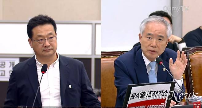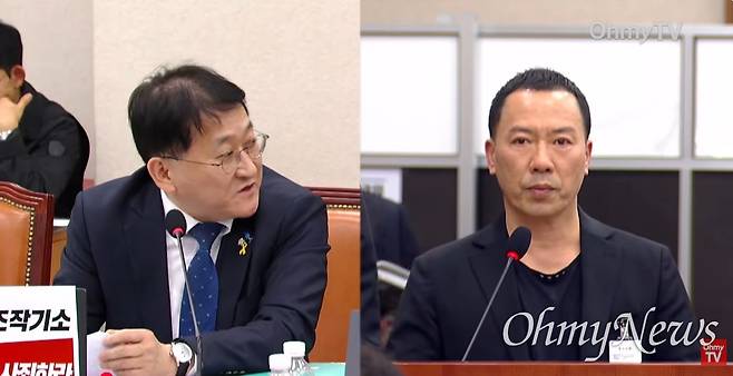 | ▲ 고성지르는 강백신 검사...왜? 대장동 개발 비리 사건을 수사했던 강백신 검사가 16일 서울 여의도 국회에서 열린 '윤석열 정권 정치검찰 조작기소 의혹 사건 진상규명 국정조사'에 증인으로 출석해 답변 도중 발언을 마무리해달라는 서영교 위원장에게 고성을 지르며 항의하고 있다. |