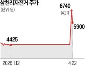 22일 삼천리자전거는 5900원에 마감했다. 상장폐지 우려를 벗고 거래가 재개된 지난 20일부터 3거래일 동안 43.2% 올랐다. 거래 재개 직후 이틀 동안 50% 넘게 급등했다가 이날 상승폭을 일부 반납했다.