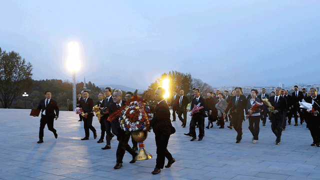 조총련계 대규모 상공인 대표단 방북…김일성 동상에 헌화