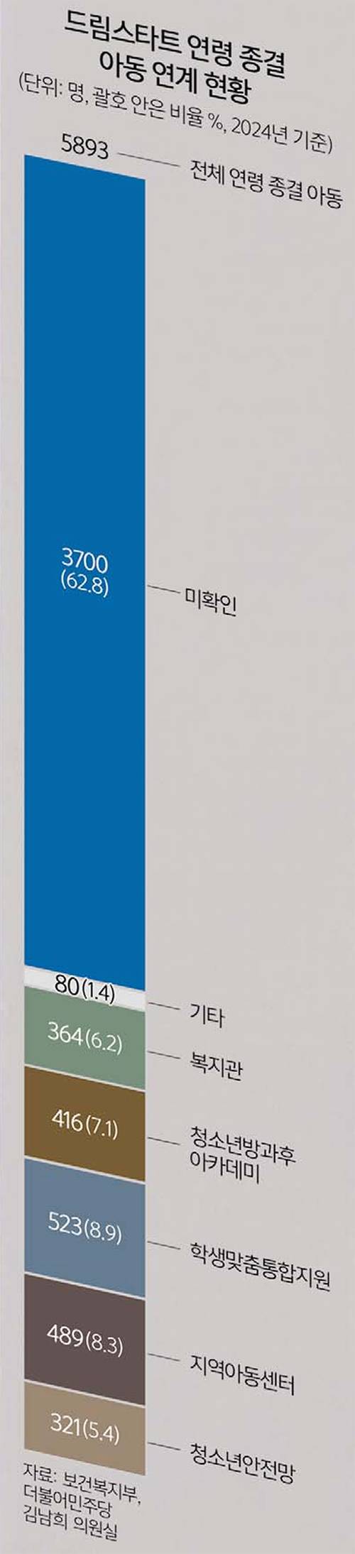 드림스타트 사업을 지원하는 복지부 산하 아동권리보장원도 연령 기준 종결 자체의 문제를 공식 문서에서 지적한 바 있다. 아동권리보장원이 발간한 2024년 드림스타트 통계보고서는 “사례관리 종결의 주요 사유가 연령도래에 집중된 것은 서비스 제공이 연령 중심으로 이뤄지는 경향을 반영한다”며 “향후에는 단순 연령 기준이 아닌, 아동의 상황 호전이나 목표 달성 여부를 기준으로 종결 시점을 설정하는 방식이 바람직하다”고 했다.