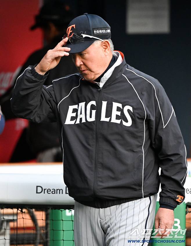 22일 잠실구장에서 열린 LG와 한화의 경기. 한화 김경문 감독이 생각에 잠겨 있다. 잠실=박재만 기자 pjm@sportschosun.com/2026.04.22/