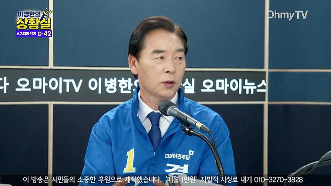 | ▲ 오중기 더불어민주당 경북도지사 후보가 22일 오마이TV '이병한의 상황실'과 인터뷰하고 있다. |