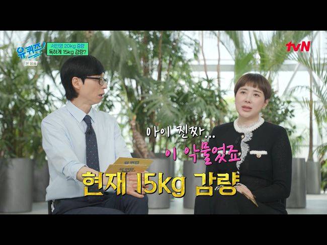 욕설 사건 후 자숙 시간을 끝내고 돌아온 서인영. 서인영은 “전 맛있는 거 먹고 행복해졌다. 그런데 그 모습이 기사화가 됐는데, 제 모습을 처음 봤다”라며 다이어트를 결심하게 된 계기를 말했다. 그는 “새벽 2시마다 먹는 야식을 끊을 수 있을까? 근데 독하게 끊었다”라면서 15kg 감량을 했다고 말했다. 유재석은 “진짜 쫙 뺐다”라며 놀랐고, 서인영은 “탄수화물 끊은 지 7개월 됐다. 생식 먹고, 주식은 달걀이다”라며 뿌듯하게 말했다.