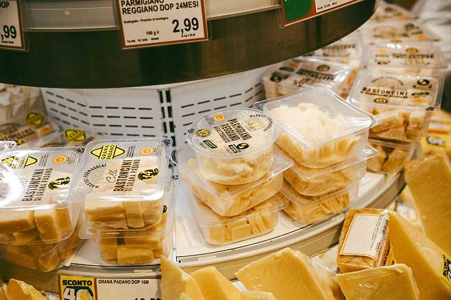 특히 늦은 밤 숙소에서 즐길 야식을 찾고 있다면 에세룽가가 최적의 장소다. 프로슈토와 살라미, 짭짤하고 깊은 풍미의 파르미지아노 레지아노 치즈를 마트 가격으로 즐길 수 있다. 여기에 가성비 훌륭한 이탈리아 현지 와인 한 병을 곁들이면 훌륭한 조합이 완성된다.