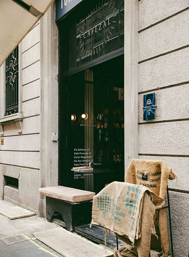 포르투갈어로 커피 농장을 뜻하는 '카페잘(Cafezal)'은 밀라노 현지인들 사이에서도 실력 있는 스페셜티 커피 로스터리로 통한다. 브라질 출신의 엔지니어 카를로스 비텐쿠르트(Carlos Bitencourt)가 고품질 커피에 대한 열정으로 2018년 비아 솔페리노 27번지에 매장을 열었다.