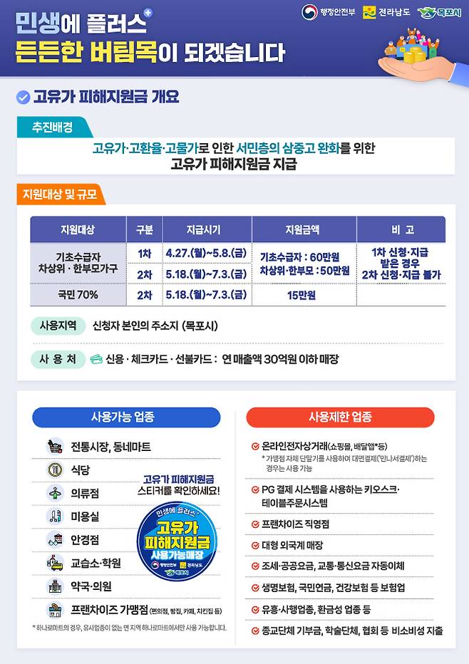 전남 목포시가 고유가와 물가 상승으로 경제적 고충을 겪는 시민들을 위해 고유가 피해지원금 지급 준비에 행정력을 집중한다.