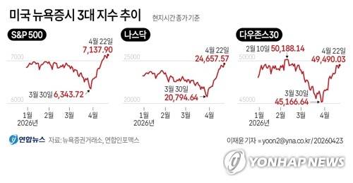 [그래픽] 미국 뉴욕증시 3대 지수 추이