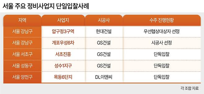 23일 건설업계에 따르면 최근 서울 주요 정비사업지에는 단일 입찰 사례가 부쩍 늘었다.