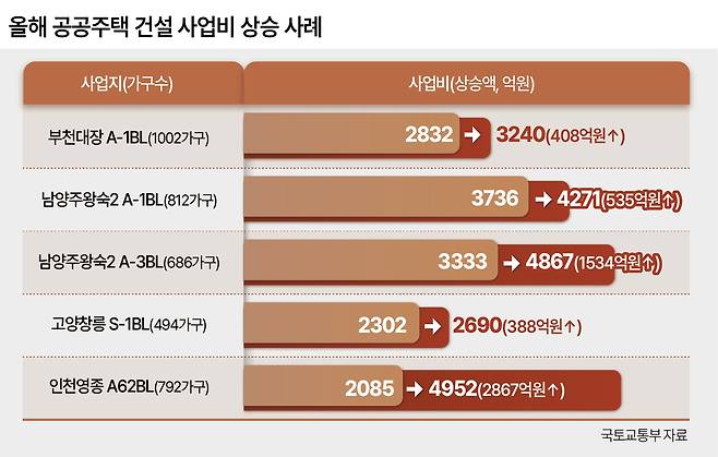 올 들어 3기 신도시를 포함해 수도권 일대 공공주택 건설사업 비용이 늘어난 사례는 부천대장 A1블록뿐이 아니다.