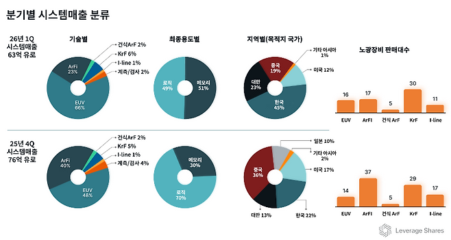 이번 분기에서 특히 눈에 띄는 변화는 고객들이 어떤 목적의 생산을 위해 장비를 사들이고 있는지 그 구성이 달라졌다는 점이다. 인공지능의 핵심 두뇌 역할을 하는 GPU 생산용 장비보다 메모리 반도체 생산용 장비가 더 큰 비중을 차지하기 시작했다.