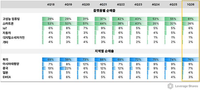 투자자들에게 또 하나 중요한 문제는 수요의 지속 가능성이다. ASML 장비 구매는 데이터센터에서 AI 관련 칩 수요가 계속 유지된다는 전제 위에 서 있다. TSMC 데이터는 이 수요가 주로 미국에서 나오고 있음을 보여주며, 이는 미국이 사실상 세계 최대 AI 시장 가운데 하나라는 뜻이 된다.