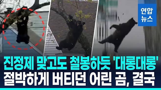 날이 밝은 후에도 나무 위에 올라간 곰이 좀처럼 내려오지 않자 경찰과 뉴욕주 환경보호국(DEC)은 오전 11시 40분께 곰에게 진정제를 투여했습니다.