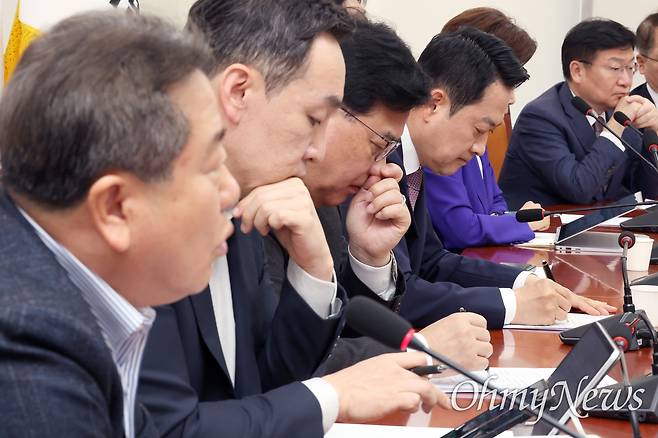 | ▲ 장동혁 옹호나선 조광한 조광한 국민의힘 최고위원(맨 왼쪽)이 23일 서울 여의도 국회에서 열린 최고위원회의에서 장동혁 대표를 옹호하는 발언하고 있다. 왼쪽 네 번째가 장 대표. |
