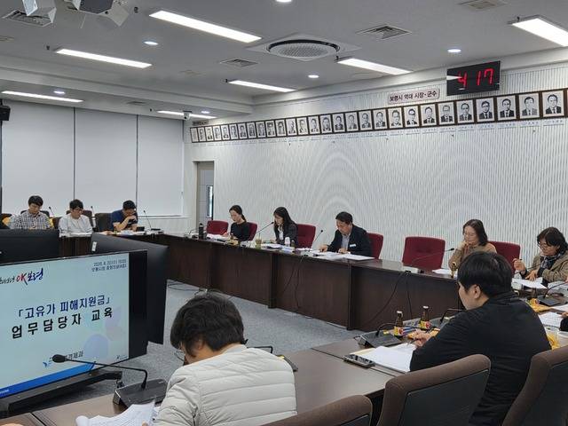 시는 지난 22일 시청 중회의실에서 지역경제과장을 비롯해 원산출장소 및 16개 읍·면·동의 고유가 피해지원금 담당 팀장과 실무자들을 대상으로 '1차 지급 관련 업무 교육'을 실시했다고 밝혔다.