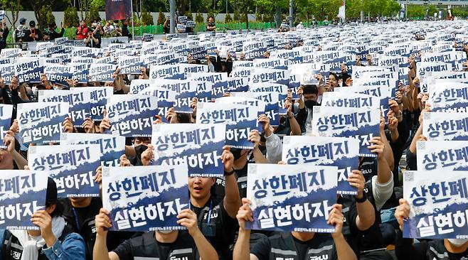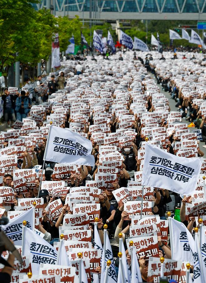 삼성전자 노조 4만여명 투쟁…주주들은 맞불 집회 [한강로사진관]