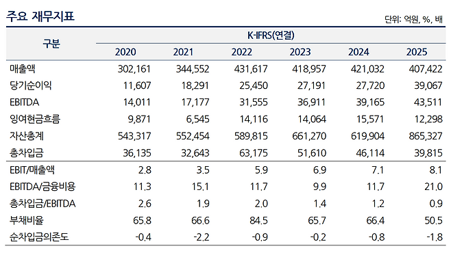 실제로 2021년 1조 7177억원에 불과했던 EBITDA는 2022년 3조 1555억원으로 급격하게 뛰었다. 이어 2023년 3조 6911억원, 2024년 3조 9165억원으로 증가세를 보이다 지난해에는 앞단위를 갱신하면서 4조 3511억원을 기록했다.