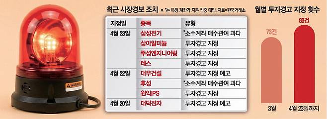 '과열 경보음' 커졌다 … 투자경고 종목 속출