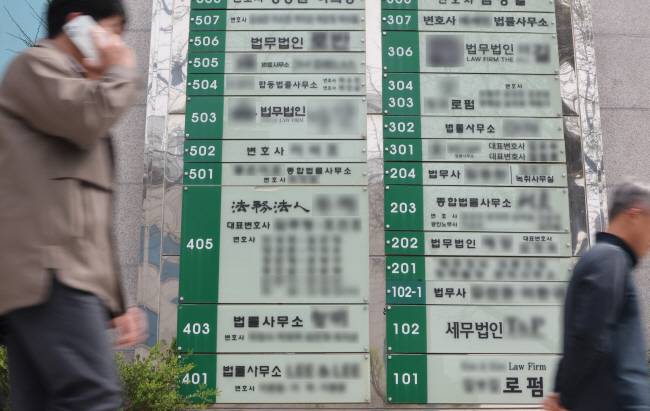 [서울 서초동 서울중앙지법 앞 건물에 입주한 변호사 사무실 모습. (사진=연합뉴스)]