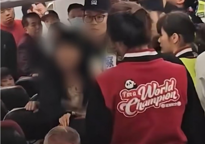 중국 충칭에서 말레이시아로 향하던 국제선 항공편에서 한 승객이 기내 소란을 벌이다 보안 요원에 의해 강제로 끌려 나가는 일이 발생했다.