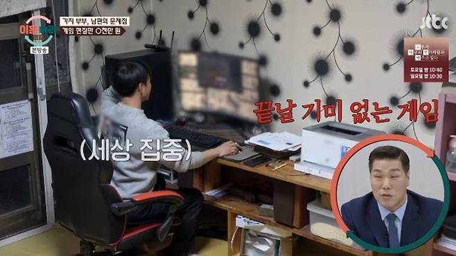 남편은 게임 현질에 쓴 돈만 5천만이라고 털어놨고 아내는 "자기는 쉴 틈이 없으니까 그것밖에 스트레스 풀 데가 없다고 한다"라고 말했다.