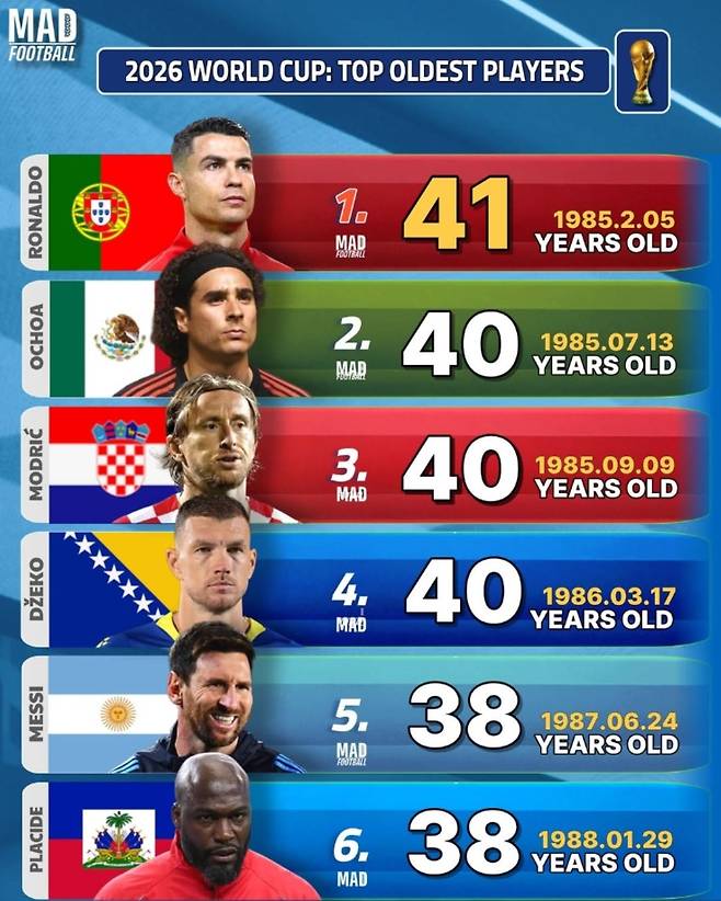 매체는 "나이는 단지 숫자일 뿐이지만, 이 6명의 아이콘들에게 북중미 월드컵은 아마도 그들의 마지막 무대가 될 것"이라며 "이들은 축구의 한 시대를 정의했으며, 곧 우리는 그들의 마법을 세계에서 가장 큰 무대에서 작별해야 할 것"이라고 전했다.