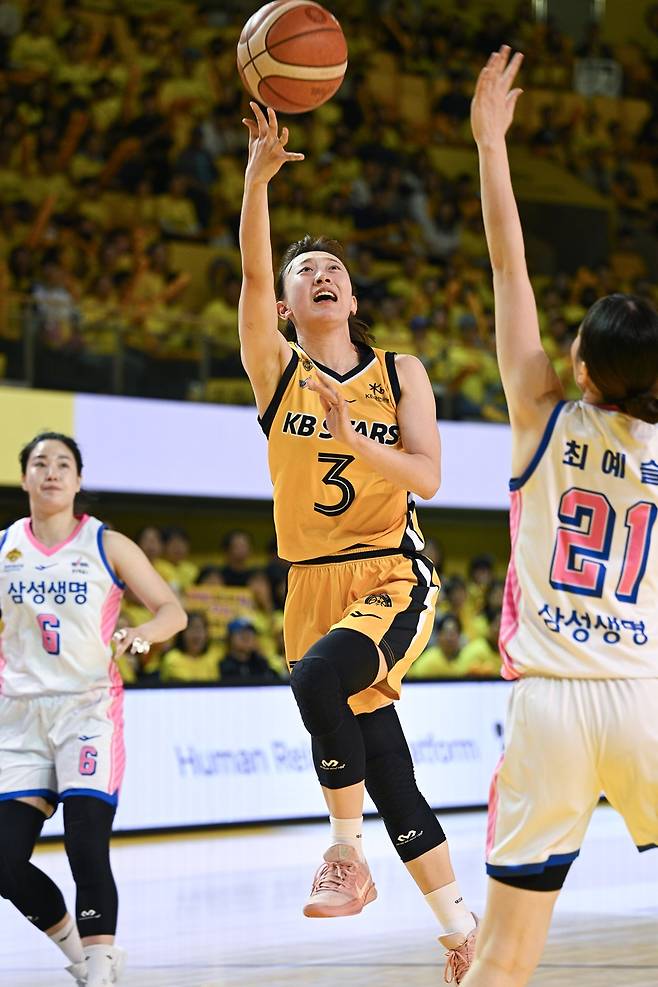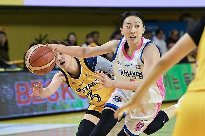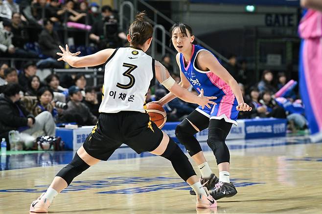 이주연의 삼성생명과 이채은의 KB스타즈는 지난 22일부터 5전 3선승제의 BNK금융 2025~2026 여자프로농구 챔피언결정전을 치른다. 1차전은 KB스타즈의 69-56 승리로 끝났다.
