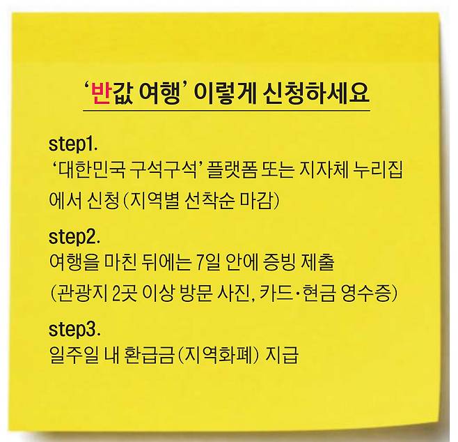 단, ‘반값 여행’은 지역마다 지원 대상, 신청 방식, 증빙 기준, 환급된 지역화폐의 사용처까지 세부 규정이 다르다. 같은 제도라도 적용 방식이 다르므로 사전 확인이 꼭 필요하다. 관광공사가 운영하는 ‘대한민국 구석구석’ 플랫폼을 통해 지역별 신청 사이트와 세부 조건을 확인할 수 있다.