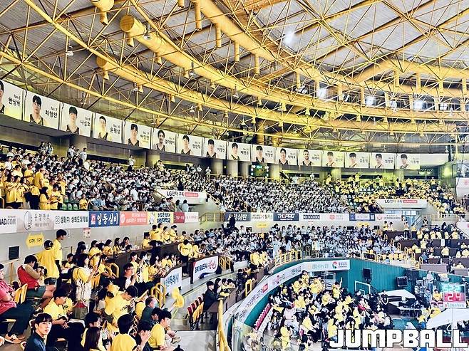 소노 팬들은 노란 물결의 창원체육관에서 뜨겁게 선수들을 응원했고, 소노는 LG를 69-63으로 제압했다.