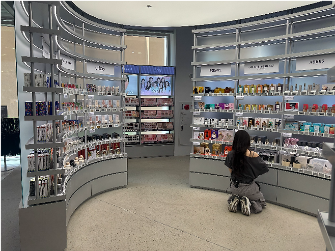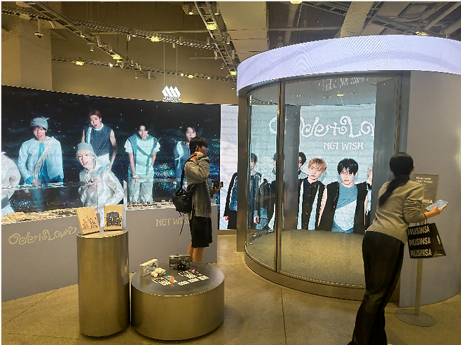 메가스토어 성수는 각 층마다 체험형 콘텐츠를 강화했다. 지하에서는 앨범 IP 기반 팝업을 운영하고, 고객이 직접 참여할 수 있는 체험 부스를 마련했다. 코인을 받아 부스 내부에서 자유롭게 노래를 부르고 촬영할 수 있다.