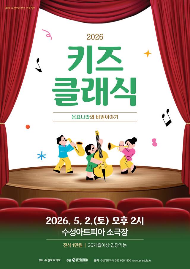 '수성키즈클래식' 시리즈는 수성아트피아가 유아부터 초등학교 저학년을 주요 대상으로 수준 높은 클래식 경험을 제공하기 위해 대구음악협회와 공동으로 마련한 프로그램이다. '2026 수성키즈클래식' 시리즈 5월 공연인 '음표나라의 비밀이야기'가 오는 5월2일 오후 2시 수성아트피아 소극장에서 열린다.