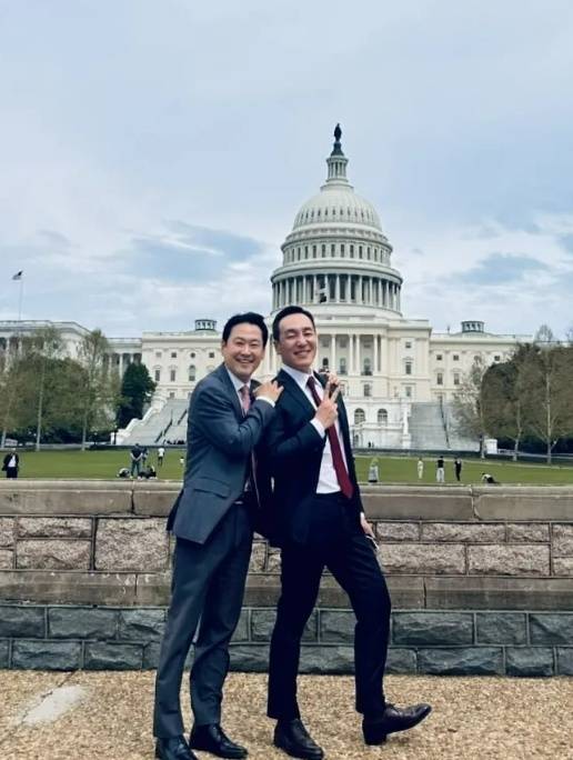 | ▲ 방미 중인 장동혁 국민의힘 대표가 미국 워싱턴DC 국회의사당 앞에서 김민수 최고위원과 함께 찍은 사진 |