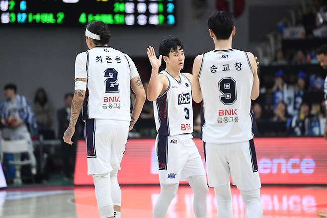 부산 KCC는 24일 안양정관장아레나에서 열린 2025~2026 LG전자 프로농구 4강 플레이오프 경기에서 안양 정관장을 91-75로 꺾었다.