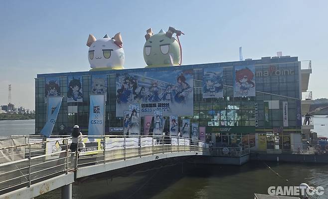 마포인트에 도착하면 옥상에 배치된 거대 드래곤버블 2개를 볼 수 있다. 입구는 SD 디자인의 GS25 컬래버 특별 일러스트로 장식됐는데 누가 봐도 엔드필드 행사가 열린다는 것을 한 눈에 알 수 있다.