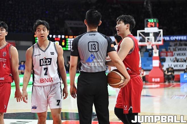 정관장은 조니 오브라이언트가 18점 6리바운드 1어시스트 1스틸 1블록, 렌즈 아반도가 12점 6리바운드 1어시스트 3스틸 1블록, 전성현이 11점 등을 올리며 분전했지만 추격에 실패하며 4강 플레이오프 1차전을 KCC에 내줬다.