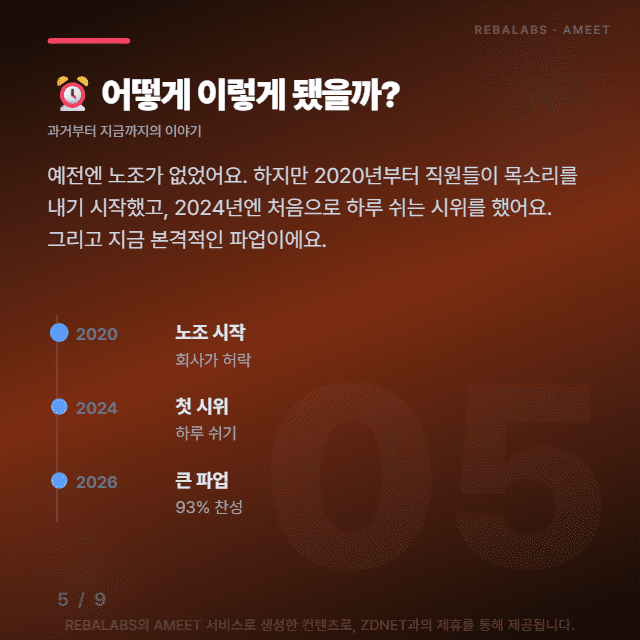 예전엔 노조가 없었지만 2020년부터 직원들이 본격적으로 목소리를 내기 시작했고, 2024년엔 처음으로 하루 시위를 했어요. 그리고 지금 본격적인 파업까지 이어진 거죠.