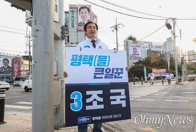 | ▲ 평택을 재선거에 출마한 조국 조국혁신당 후보가 23일 오후 경기도 평택 안중오거리에서 '평택을 큰 일꾼'이라고 적힌 피켓을 들고 퇴근길 인사를 하고 있다. |