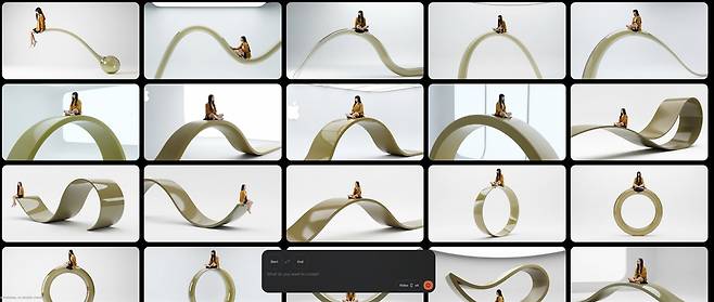 하지만 안경테가 엿가락처럼 유연하게 늘어날 수 있다는 것을 AI는 이해하지 못했다. 계속 해서 이상한 것들만 만들어냈다. 머리에 쥐가 났다. 5초짜리 장면 하나를 놓고 3일 동안 씨름했다. 발상을 바꿨다. 꼭 안경테라고 설명해야 할까? '안경'이라는 단어를 쓰는 순간, AI는 자신이 가지고 있는 자료로 고집을 부리는 듯했다.