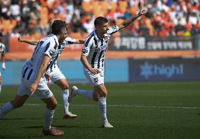 전반 42분 경기의 균형이 깨졌다. 정승원의 프리킥을 박스 안에서 강원 수비가 막아내자 박성훈이 끊어냈고 손정범의 슈팅이 수비 맞고 나오자 바베츠가 왼발로 골망을 흔들었다.