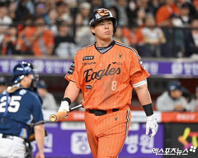 문현빈이 우익수 앞에 굴러가는 안타를 친 후, 노시환까지 행운의 안타로 1, 2루 기회가 이어졌다.