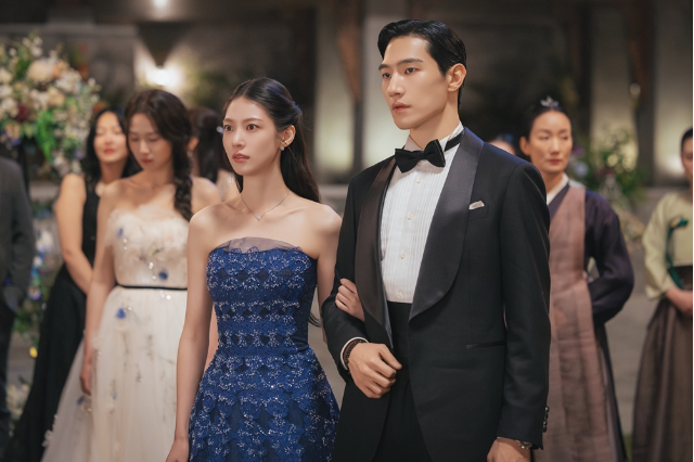 공개된 사진 속 두 사람의 비주얼은 그야말로 역대급이다. 단아하면서도 화려한 쉬폰 드레스를 입은 성희주와 늠름한 제복 자태를 뽐내는 이안대군의 모습은 동화 속 한 장면을 그대로 옮겨놓은 듯하다.
