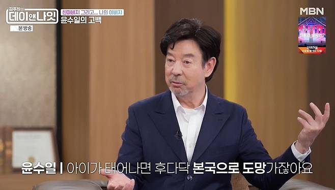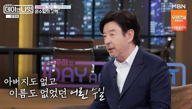 김주하가 "아버지께서 미국 공군이라고 들었다. 크면서 아버지를 만난 적 없냐"고 묻자 윤수일은 "보통 참전했다가 어떤 여인과 사랑에 빠졌다가 아이가 태어나면 후다닥 본국으로 도망가지 않냐"라며 "제가 그런 아이 중 하나니까 (아버지의) 얼굴도 알 수 없었다.