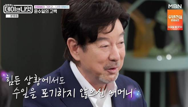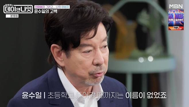 윤수일은 "어머니 고집으로 오늘날 이 자리에 있는 거다. 의붓아버지로 인해 제가 이름도 얻었다. 초등학교 들어갈 때까진 이름이 없었다"라며 "아버지를 돌아가실 때까지 잘 모셨다. 어머니하고 의가 좋아서 일주일 사이에 같이 돌아가셨다. (완장을) 한 달간 계속했다"라고 전했다.