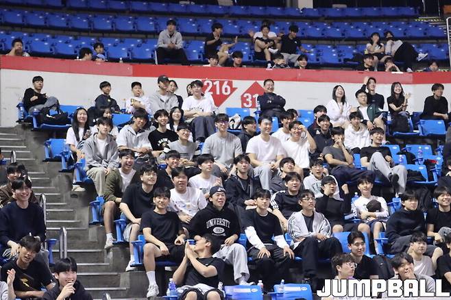 소문대로였다. 기자는 잠실학생체육관에 들어서자마자 분위기에 압도됐다. 중, 고등학생 농구 마니아들이 왜 ‘고등볼러, 고등볼러’ 하는 지를 체감할 수 있었다. 분명 일을 하러 갔는데, 당장 노트북 가방을 놔두고 관중석에 앉아 경기를 보고 싶을 정도였다. 체육관 분위기가 그랬다.