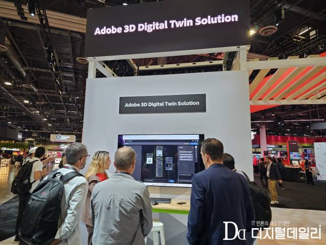 파빌리온 한쪽에는 ‘어도비 3D 디지털트윈 솔루션’ 부스에선 참관객들이 모여 대형 화면을 들여다보고 있었다. 이번 서밋에서 정식 출시된 어도비 클라우드 네이티브 3D 디지털트윈 솔루션은 엔비디아 옴니버스 라이브러리와 오픈USD 기반으로 구축됐다. 제품의 형상, 소재, 색상과 마감 등 제조 가능한 모든 변형을 담은 디지털 복제본을 만들어두면 AI 에이전트가 이를 활용해 다양한 마케팅 콘텐츠를 자동 생산할 수 있다는 개념이다.