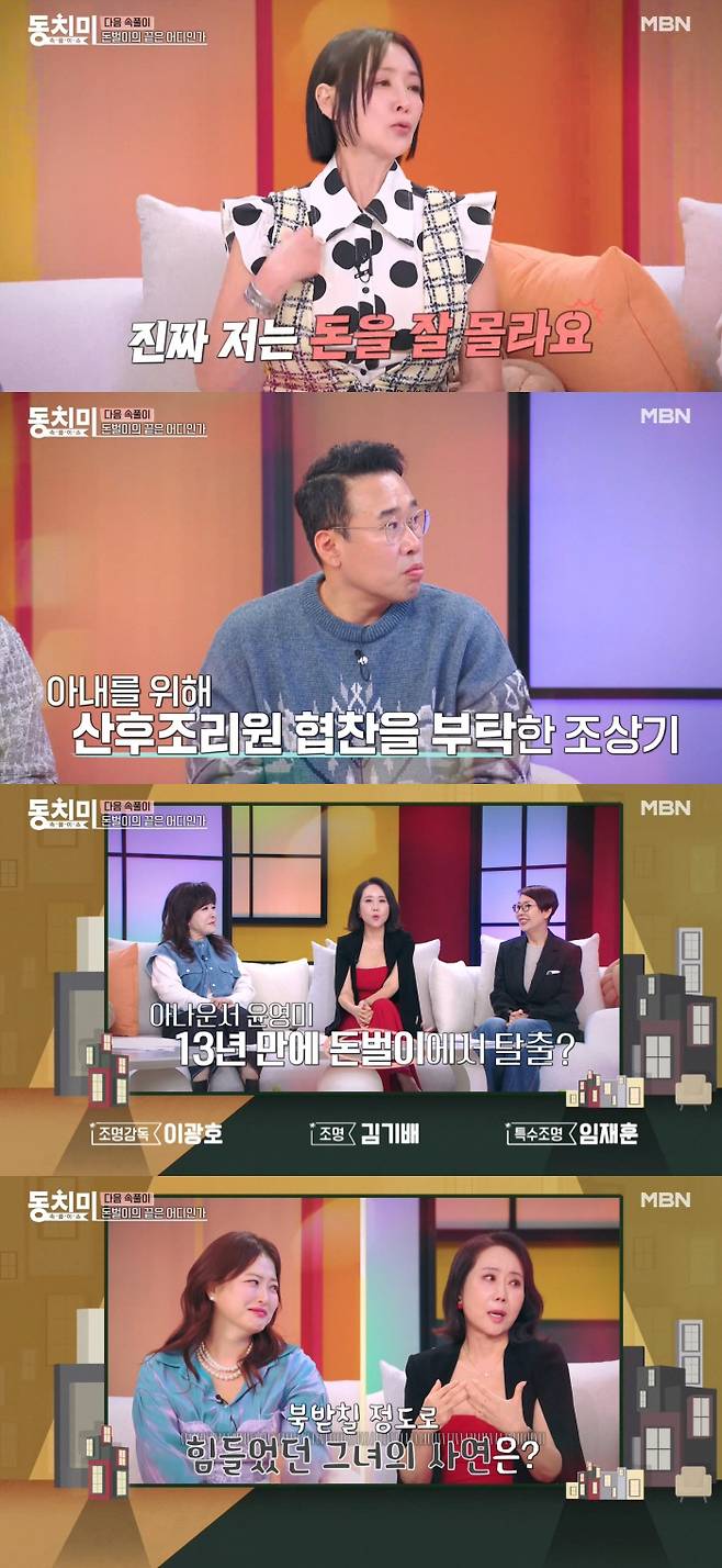 25일 공개된 MBN '속풀이쇼 동치미' 예고편에서는 '돈벌이의 끝은 어디인가'라는 주제로 방송인 윤영미, 배우 이상아, 조상기, 김정태 등이 이야기를 나눴다.
