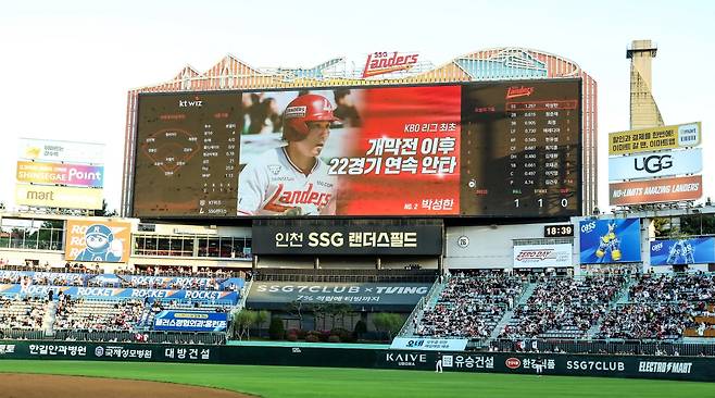 이후 박성한은 단 한 번도 1루를 밟지 못했다. 3회말 두 번째 타석에서 2루수 땅볼로 돌아섰고, 4회말 세 번째 타석에서 삼진을 당했다. 7회말 네 번째 타석에서는 유격수 땅볼로 아웃됐다. 그러면서 박성한의 기록은 22경기에서 중단됐다.