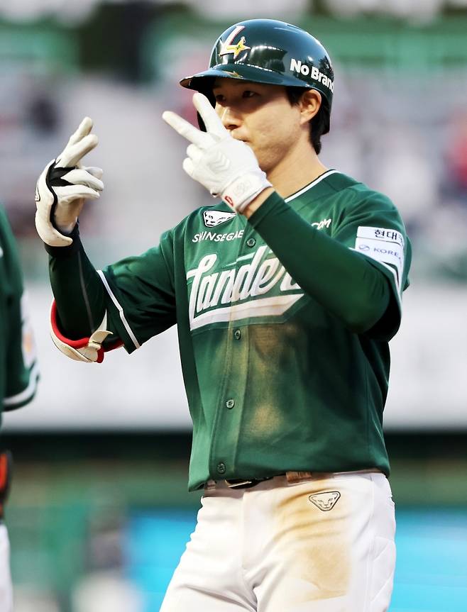 박성한은 1회말 첫 타석에서 KT 선발 고영표를 상대로 3루수 방면 땅볼을 친 뒤 1루로 전력 질주했다. 결과는 세이프였다. 하지만 공식 기록은 안타가 아닌 3루수 송구 실책이었다.
