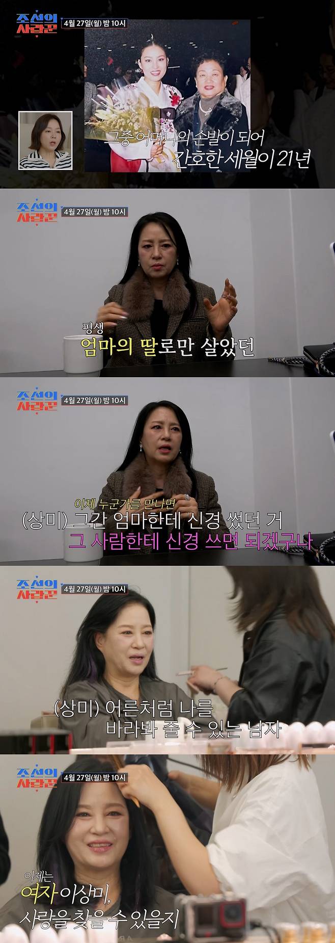 이상미는 "(엄마가) 뇌졸중이 오면서부터 너무나도 힘든 간호를 하게 됐다"면서 지난 40년 간의 세월 중 무려 21년간 어머니를 모시며 병시중을 들었다고 과거를 회상했다.