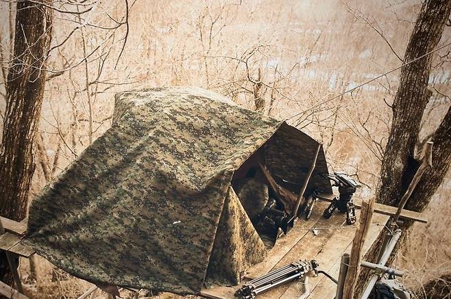| ▲ 호랑이 촬영천막 15m 높이 나무 위에 조성된 호랑이 촬영 천막 |