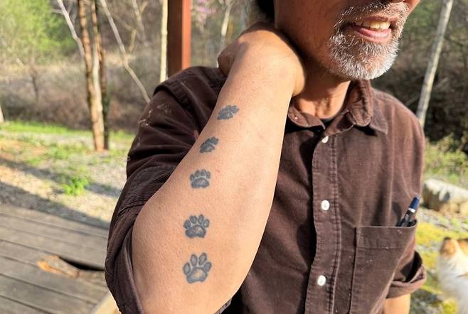 | ▲ 호랑이발자국 문신 20년 만에 다시 만난 호랑이를 기념하기 위해 새긴 문신 |
